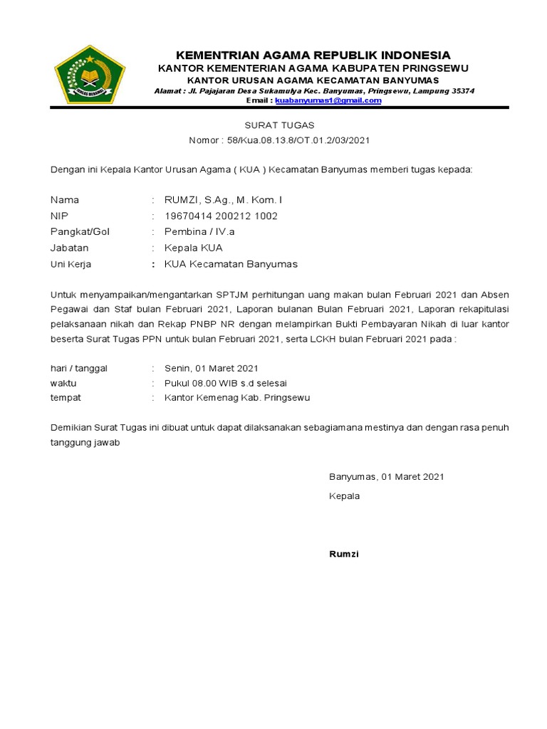 Doc Contoh Surat Tugas Kantor Urusan Agama Mandor Academia Edu
